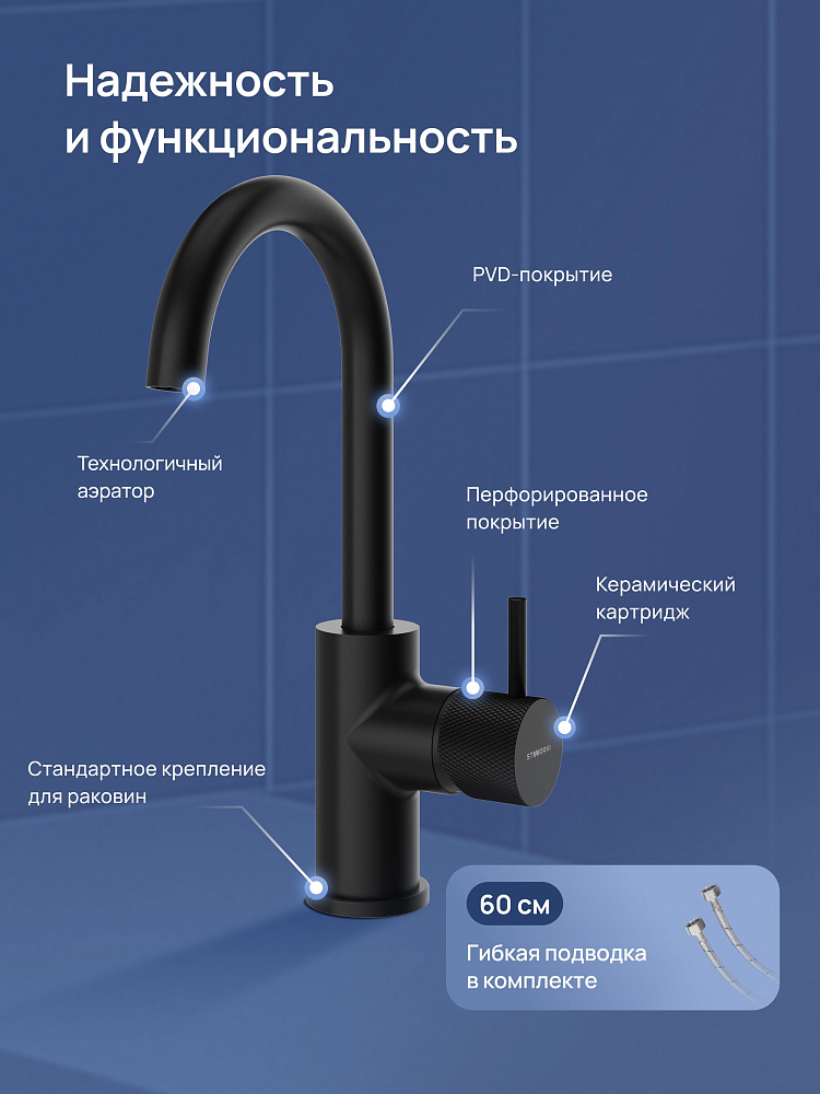 Смеситель для раковины STWORKI Стокгольм S36015BK матовый черный