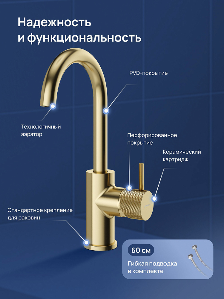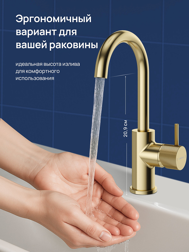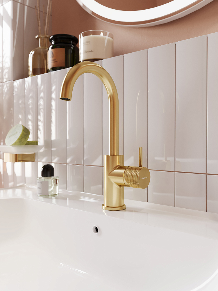 Смеситель для раковины STWORKI Стокгольм S36015GM матовое золото