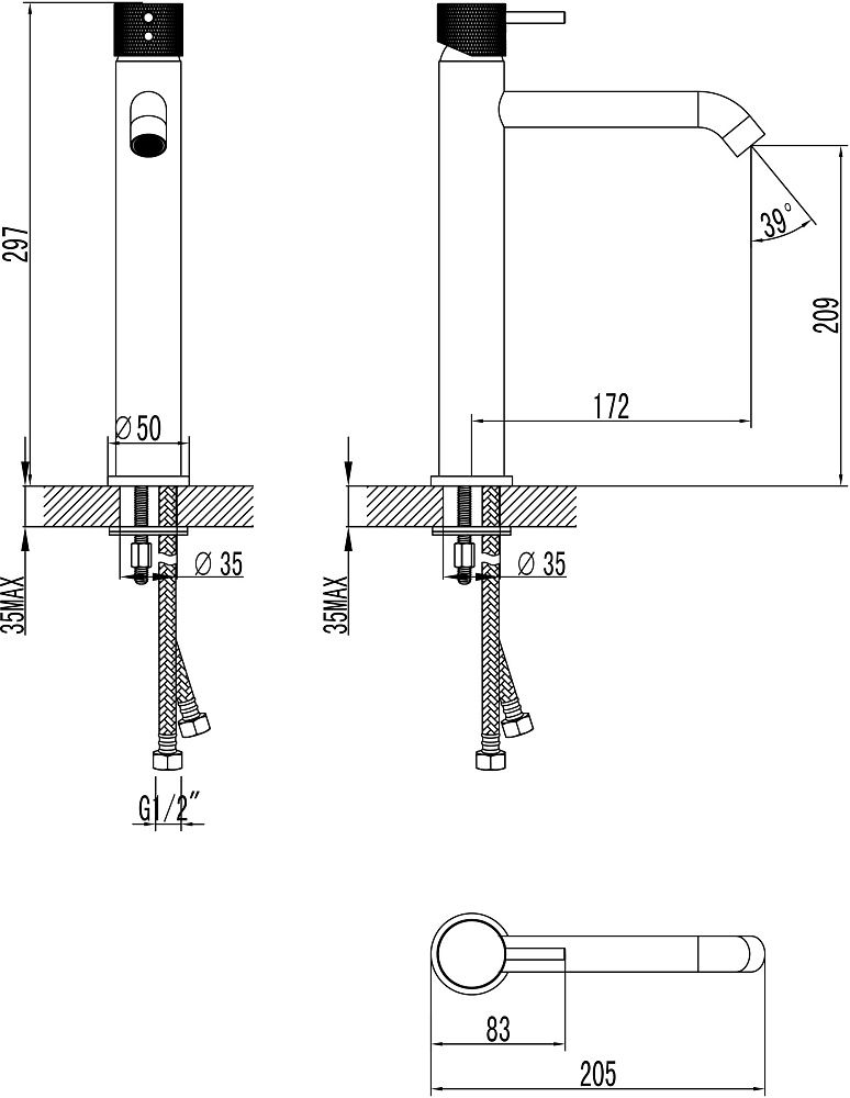 Смеситель для раковины STWORKI Стокгольм S36020BK матовый черный