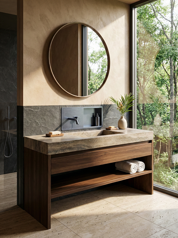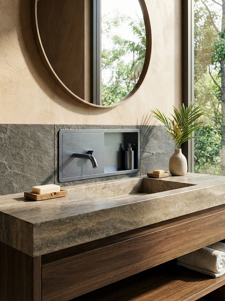 Смеситель для раковины STWORKI STUDIO S510401GB С ВНУТРЕННЕЙ ЧАСТЬЮ, с полкой, вороненая сталь