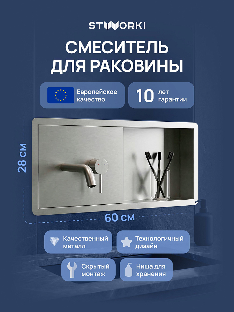 Смеситель для раковины STWORKI STUDIO S510401S С ВНУТРЕННЕЙ ЧАСТЬЮ, с полкой, сталь