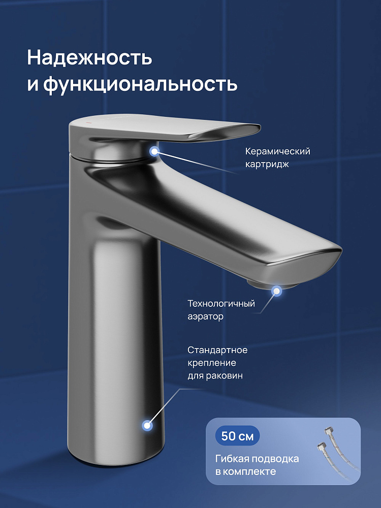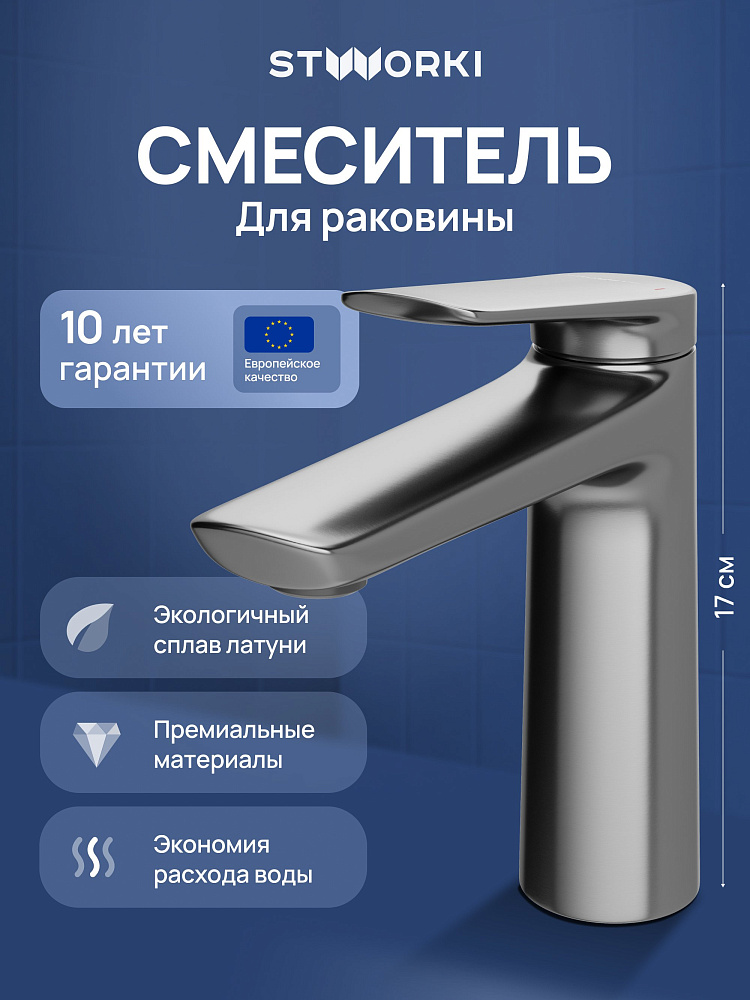 Смеситель для раковины STWORKI Вирклунд S05010GB вороненая сталь