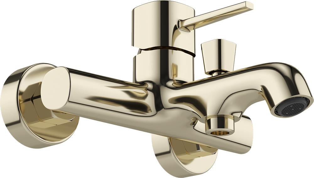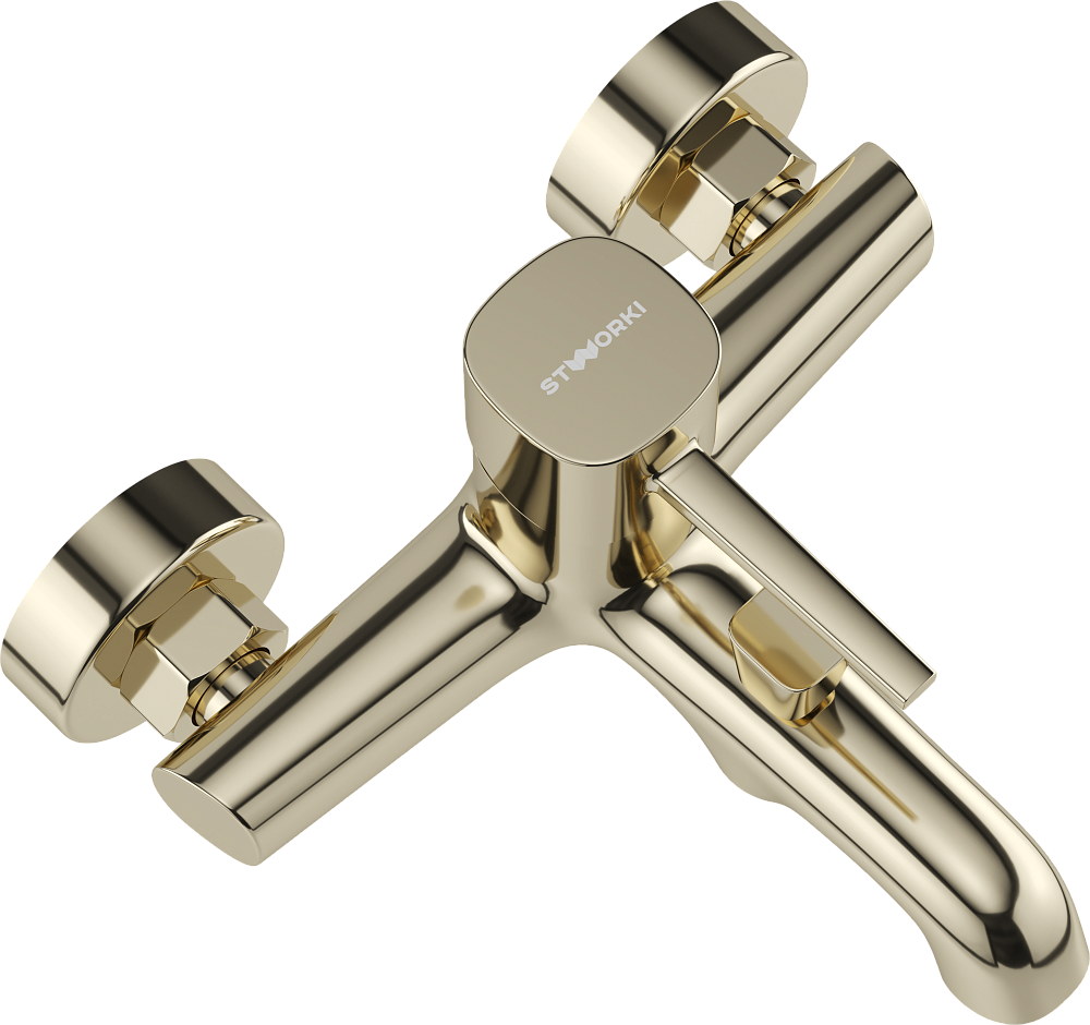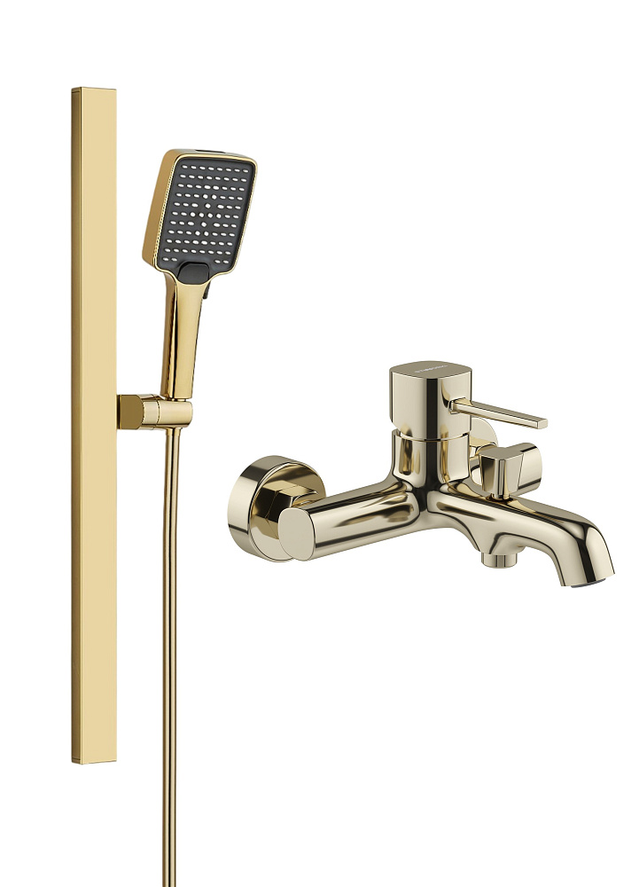 Смеситель для ванны с душем STWORKI Эстерсунд S31100GG + Душевой гарнитур Ольборг S20190GG, глянцевое золото
