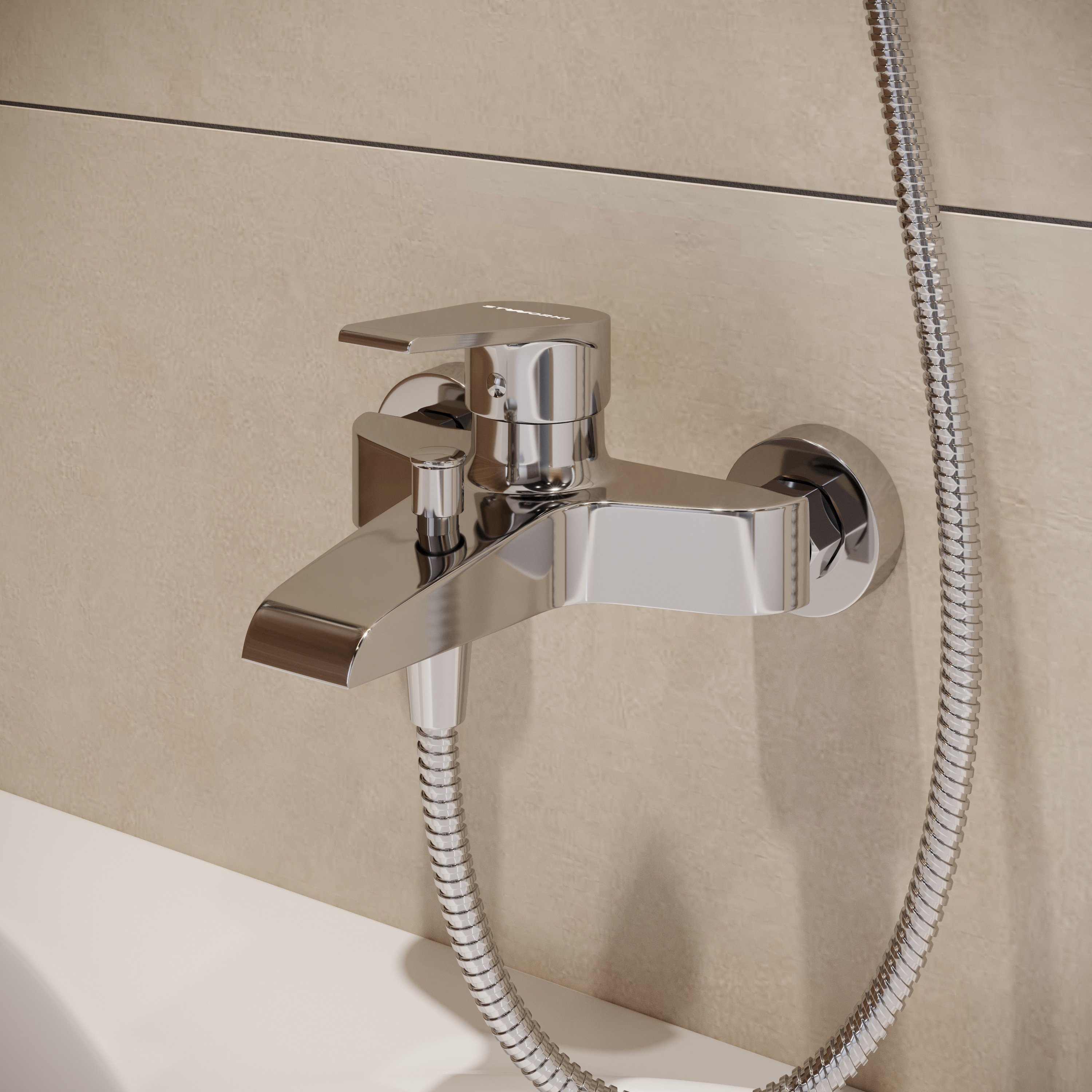 Смеситель для ванны с душем STWORKI Эстфолл S44100BK + Душевой гарнитур Ольборг S20190BK, матовый черный