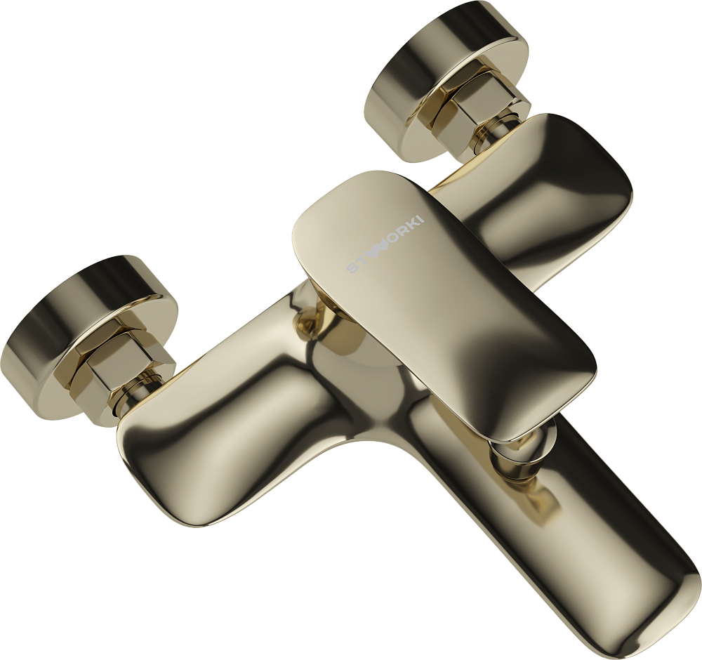 Смеситель для ванны с душем STWORKI Молде S23100GG + Душевой гарнитур Ольборг S20190GG, глянцевое золото