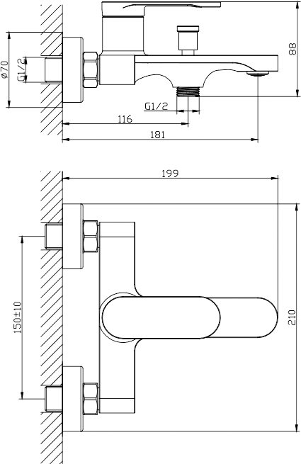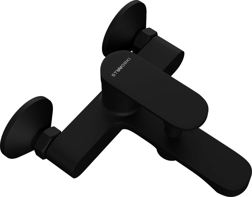 Смеситель для ванны с душем STWORKI Ноттвиль S34100BK + Душевой гарнитур Ольборг S20190BK, матовый черный