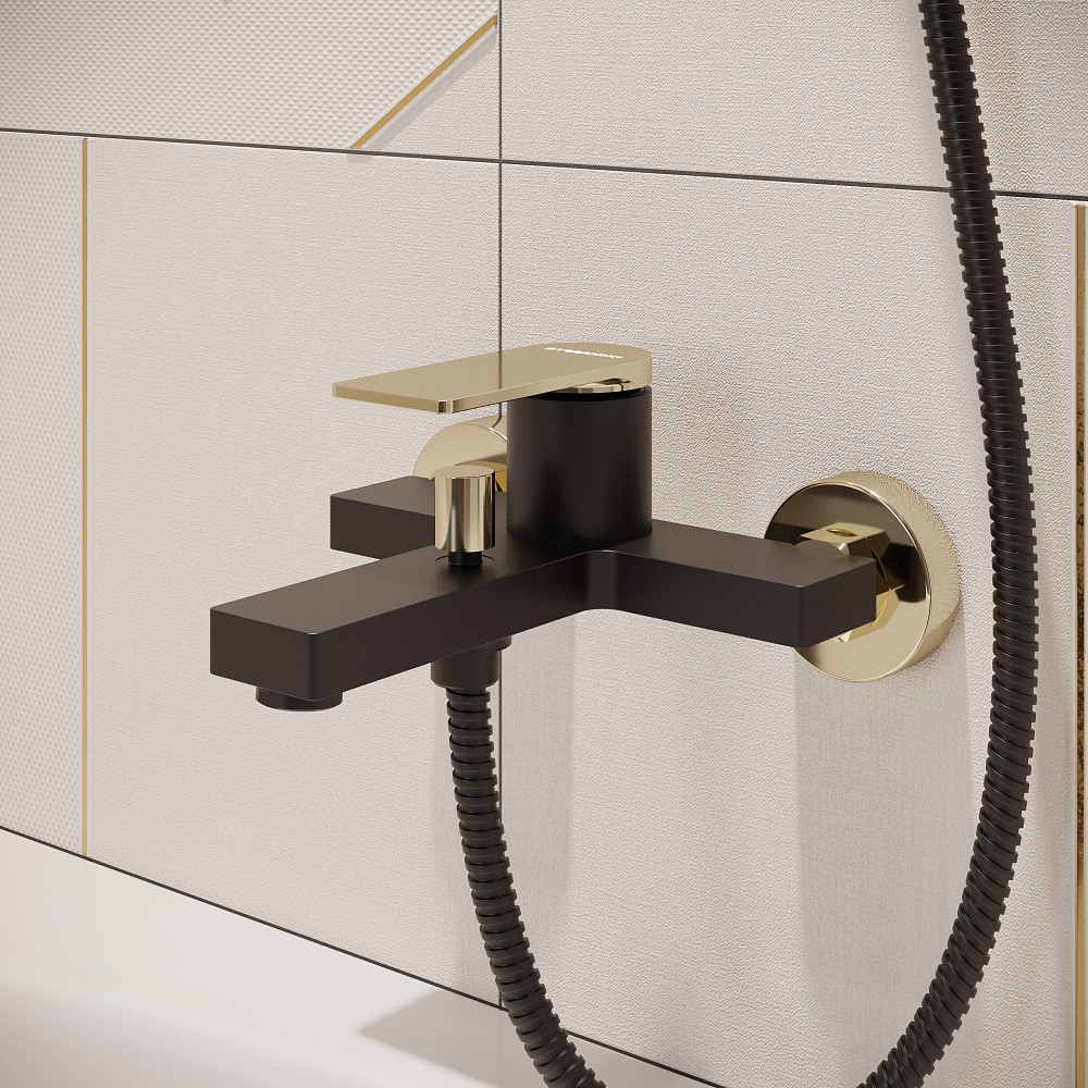 Смеситель для ванны с душем STWORKI Олланд S01100BG матовый черный, глянцевое золото