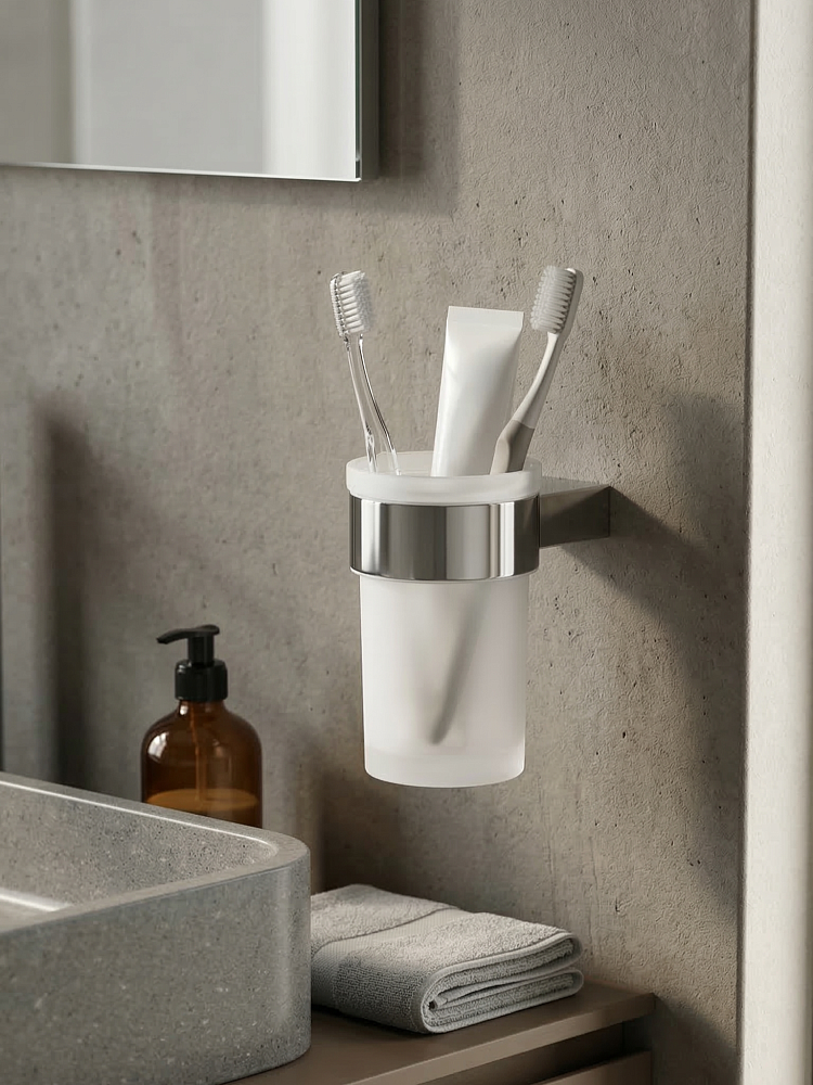 Стакан для ванной STWORKI Эстерсунд S31325CR настенный, глянцевый хром, стеклянный