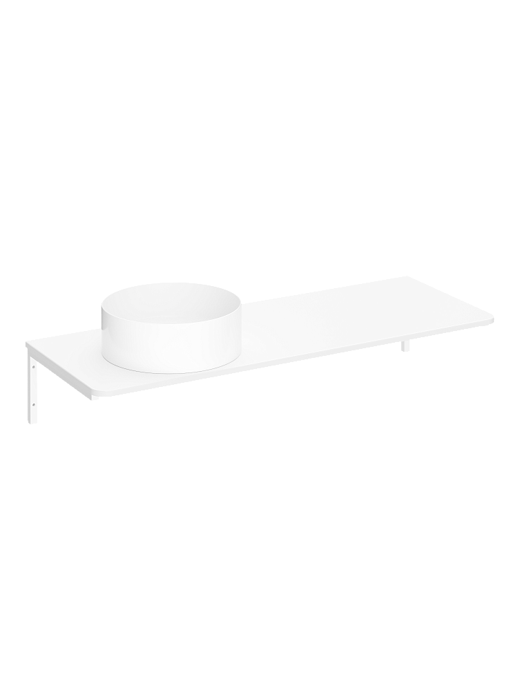 Столешница STWORKI Монтре 100 с Г-образными белыми кронштейнами, отверстие слева, белая, раковина S21415WH