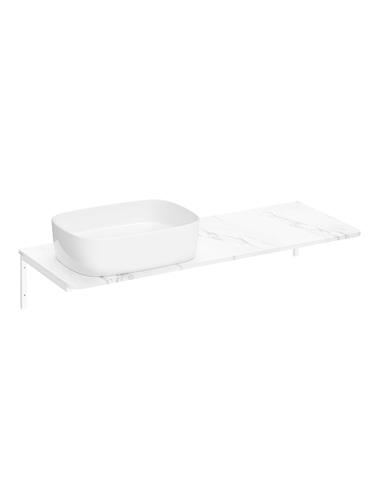 Столешница STWORKI Монтре 120 с Г-образными белыми кронштейнами, отверстие слева, белый мрамор, раковина S21412WH