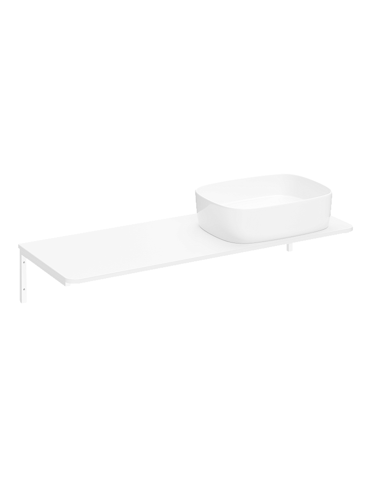 Столешница STWORKI Монтре 120 с Г-образными белыми кронштейнами, отверстие справа, белая, раковина S21412WH
