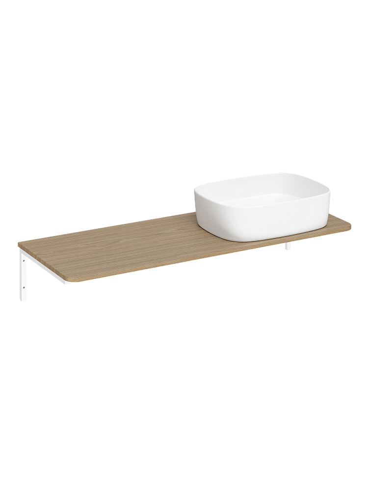 Столешница STWORKI Монтре 120 с Г-образными белыми кронштейнами, отверстие справа, светлое дерево, раковина S21412WH