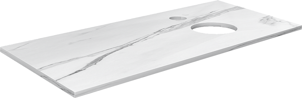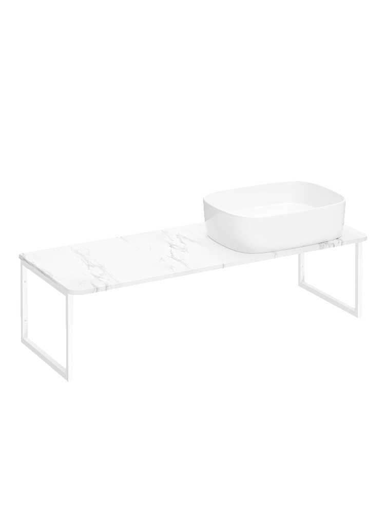 Столешница STWORKI Монтре 120 с О-образными белыми кронштейнами, отверстие справа, белый мрамор, раковина S21412WH