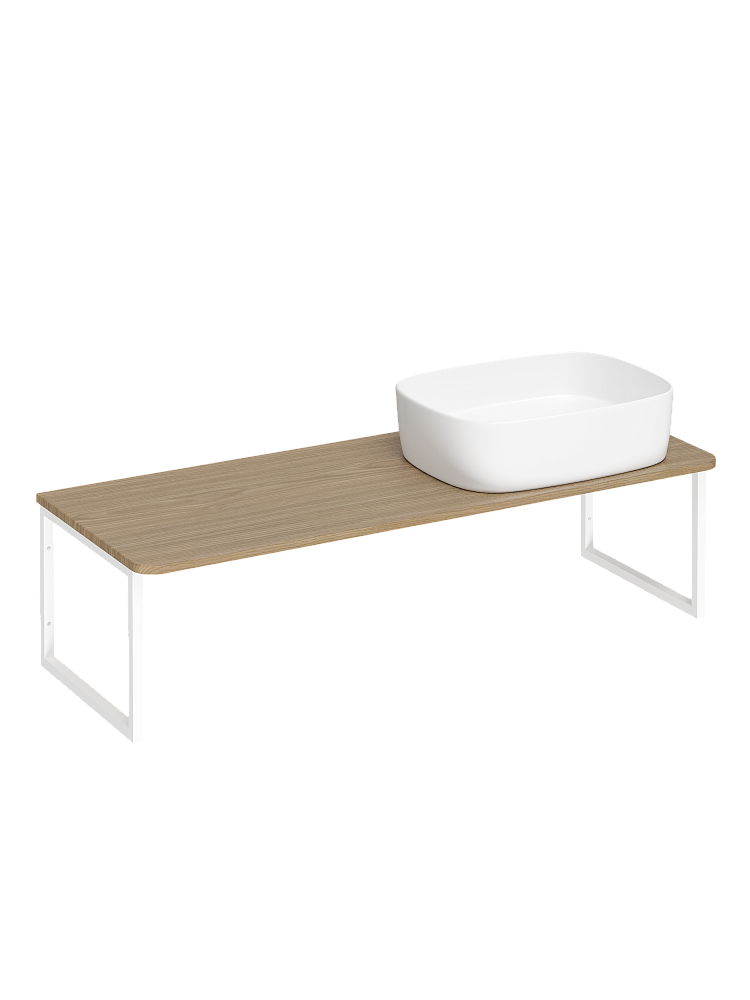 Столешница STWORKI Монтре 120 с О-образными белыми кронштейнами, отверстие справа, светлое дерево, раковина S21412WH