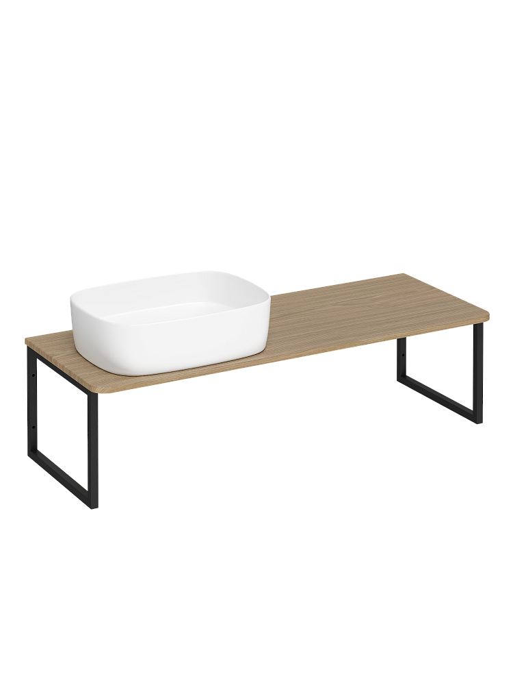 Столешница STWORKI Монтре 120 с О-образными черными кронштейнами, отверстие слева, светлое дерево, раковина S21412WH