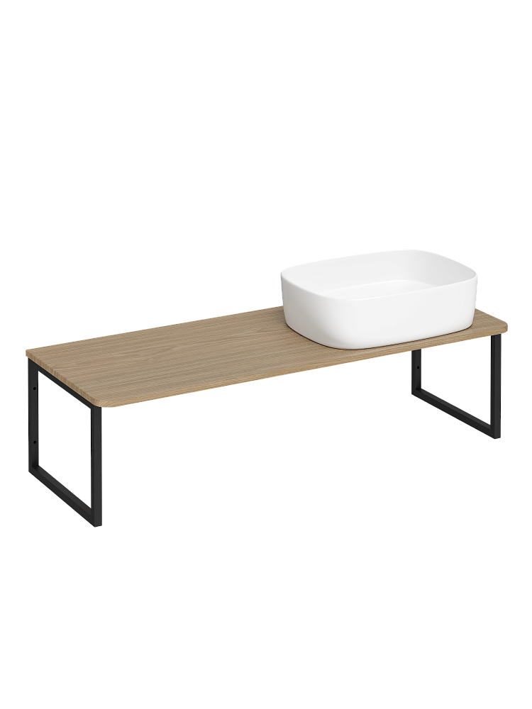 Столешница STWORKI Монтре 120 с О-образными черными кронштейнами, отверстие справа, светлое дерево, раковина S21412WH