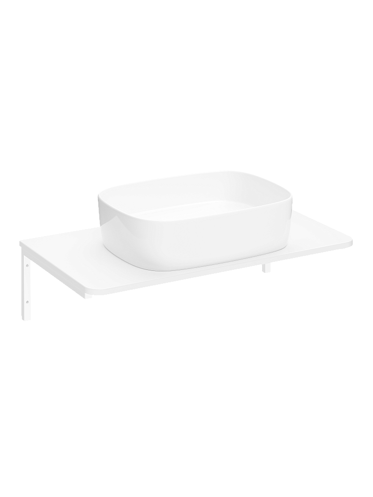 Столешница STWORKI Монтре 80 с Г-образными белыми кронштейнами, белая, раковина S21412WH