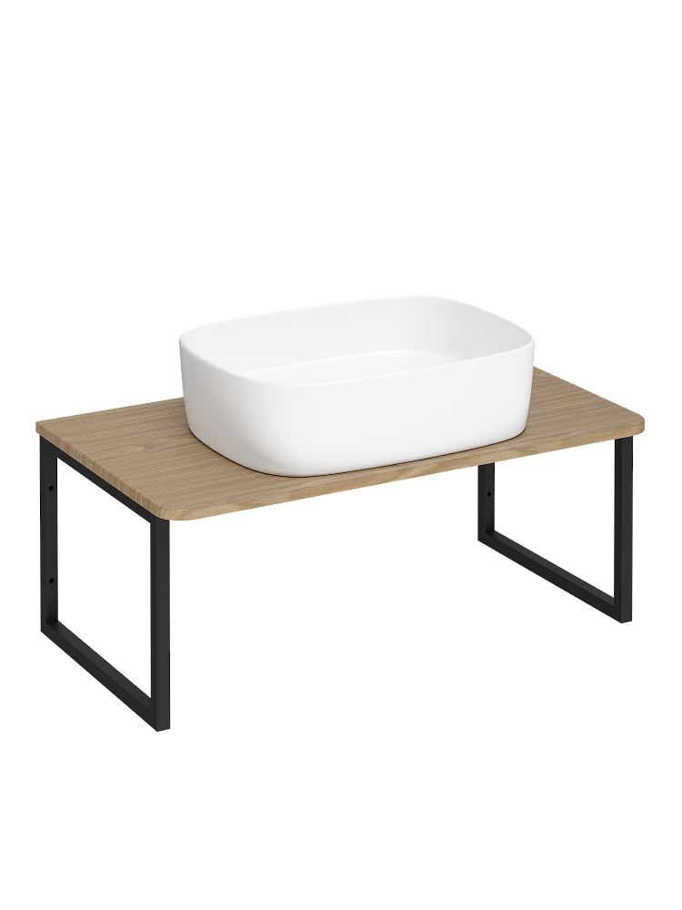 Столешница STWORKI Монтре 80 с О-образными черными кронштейнами, светлое дерево, раковина S21412WH