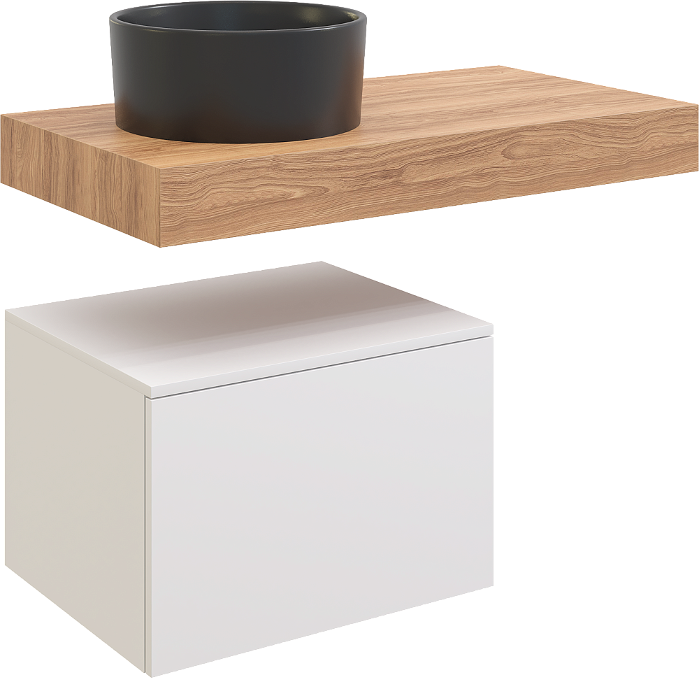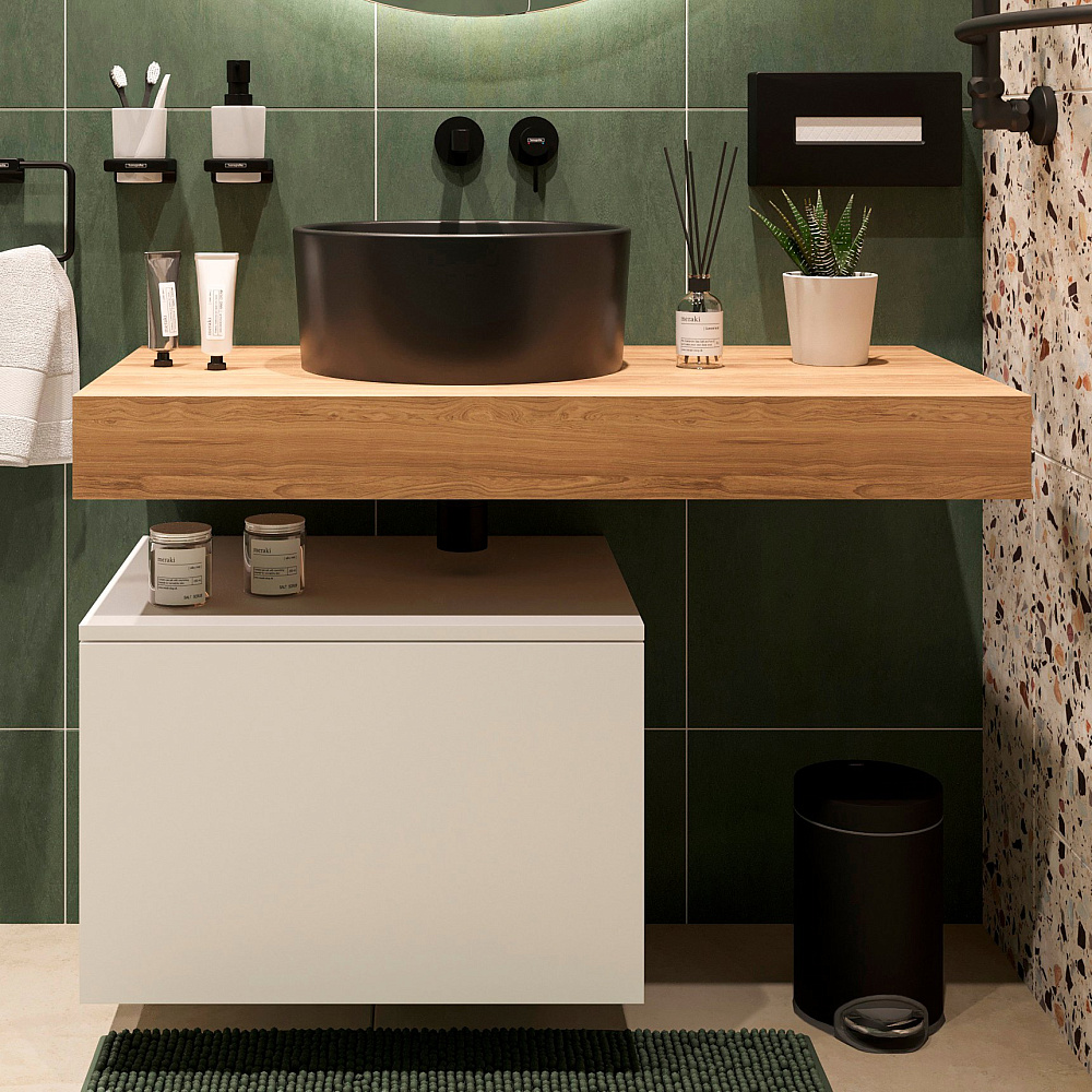 Столешница STWORKI Ольборг 100 дуб французский, без отверстий, с тумбой 60, черная раковина