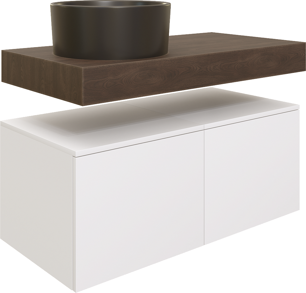 Столешница STWORKI Ольборг 100 дуб карпентер, без отверстий, 2 тумбы 50, черная раковина