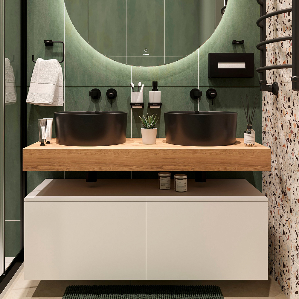 Столешница STWORKI Ольборг 120 дуб французский, без отверстий, 2 тумбы 60 + 2 раковины