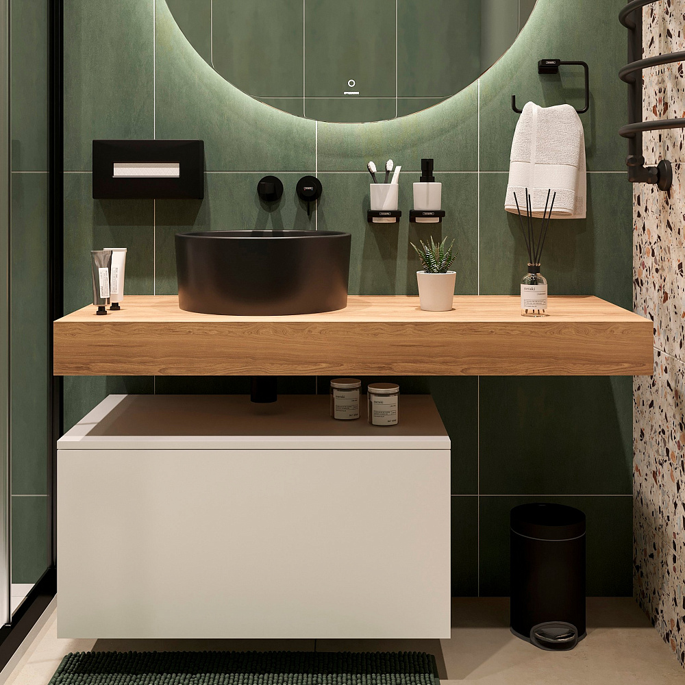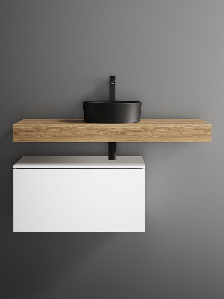 Столешница STWORKI Ольборг 120 дуб французский, без отверстий, с тумбой 80, черная раковина