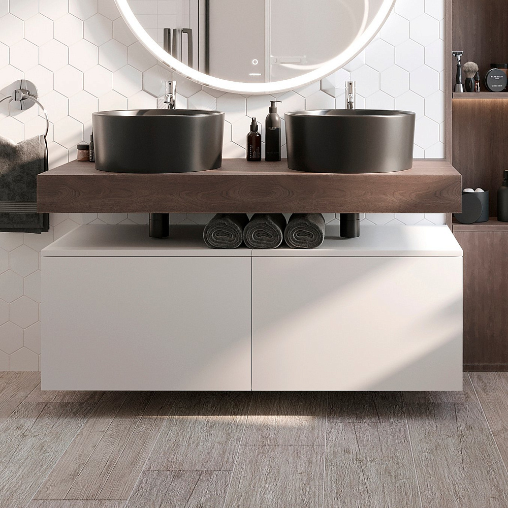 Столешница STWORKI Ольборг 120 дуб карпентер, без отверстий, 2 тумбы 60 + 2 раковины