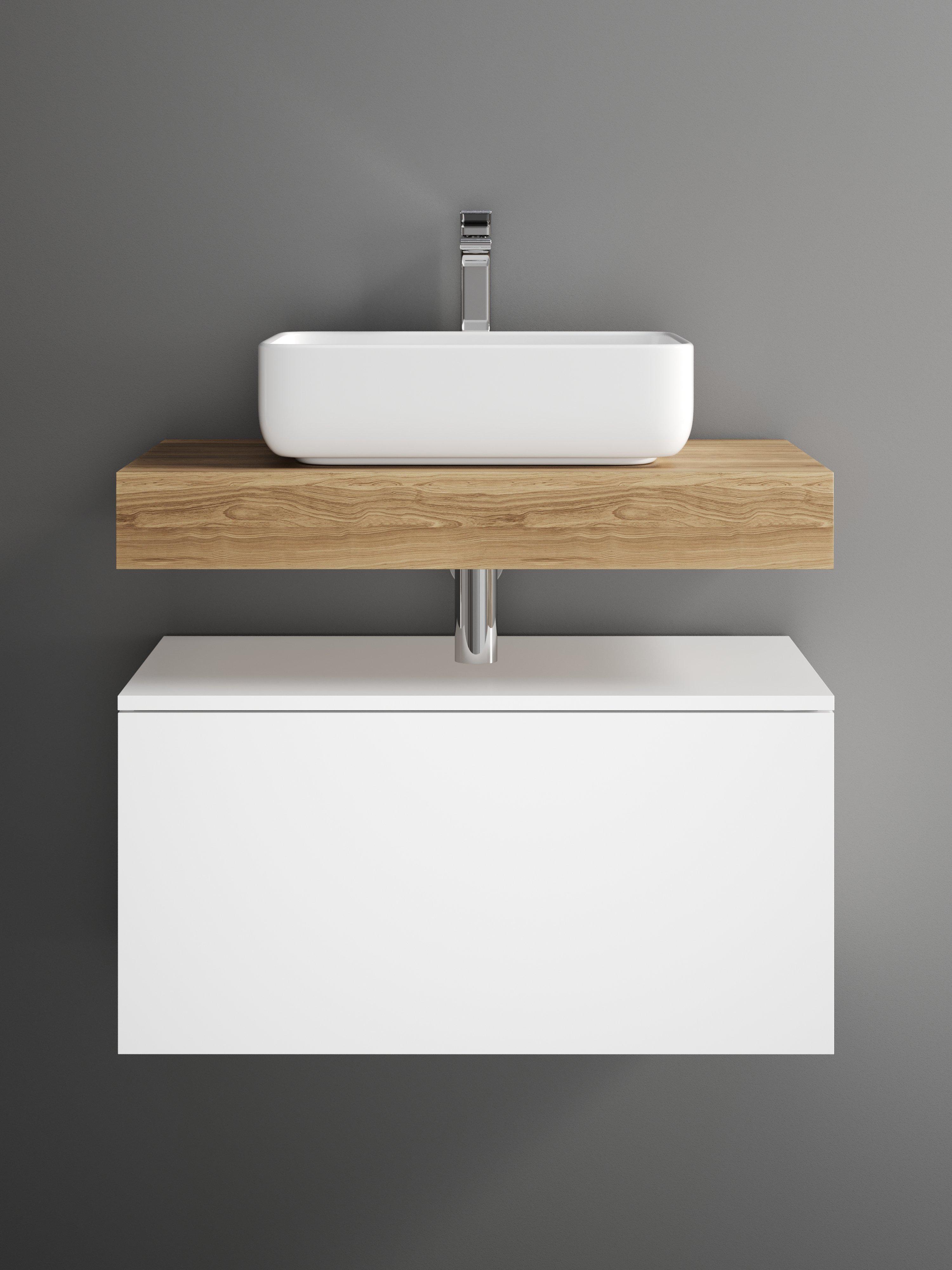 Столешница с раковиной STWORKI Ольборг 120 дуб карпентер, без отверстий, с тумбой 80