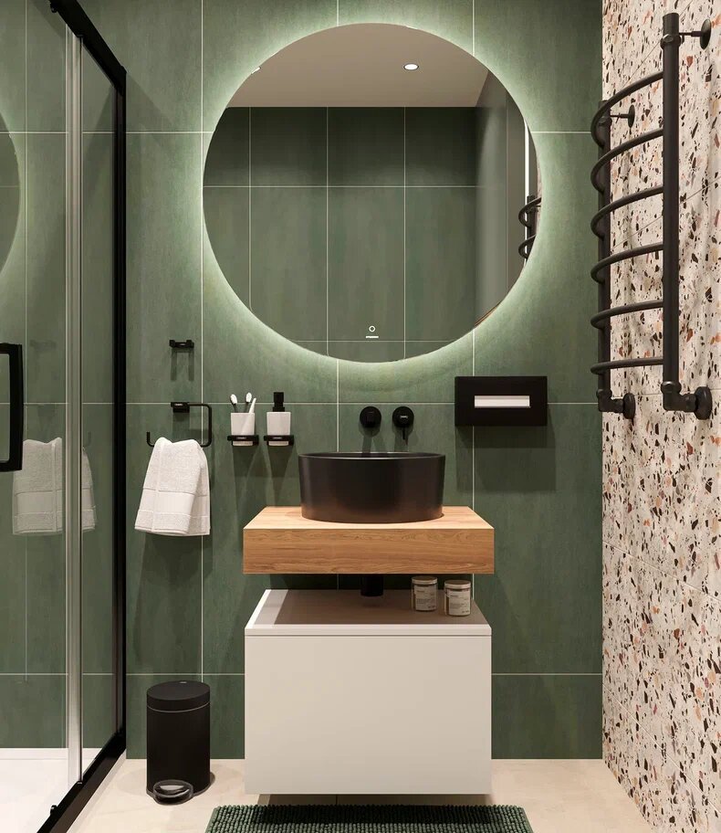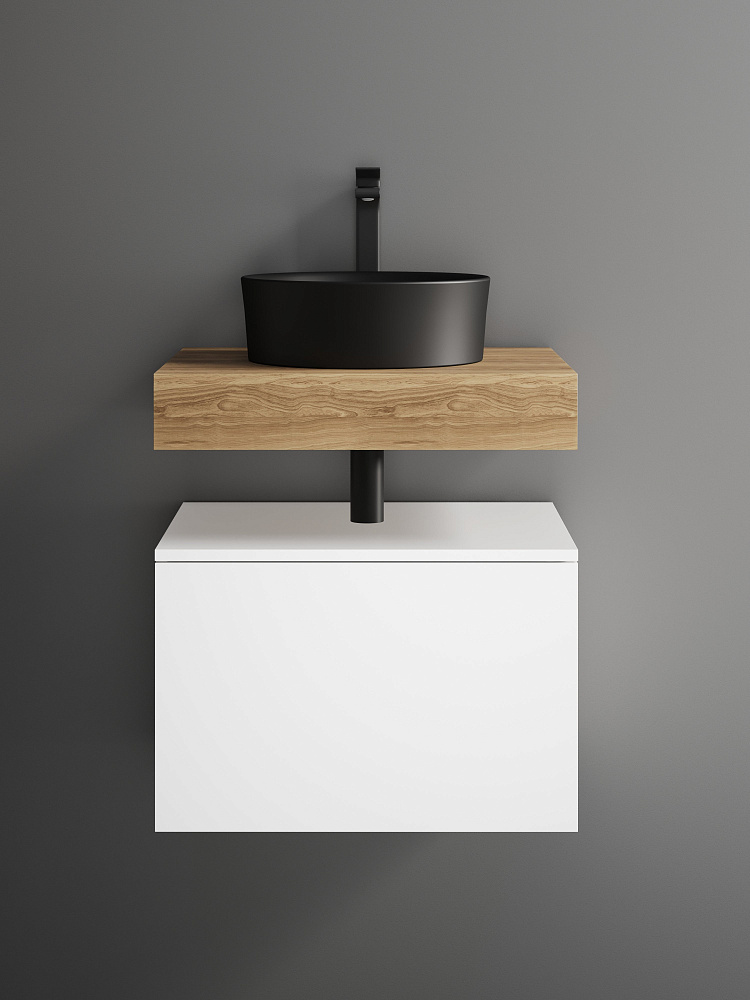 Столешница STWORKI Ольборг 60 дуб французский, без отверстий, с тумбой 60, черной раковиной