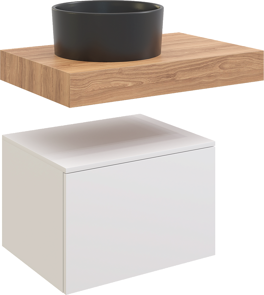 Столешница STWORKI Ольборг 80 дуб французский, без отверстий, с тумбой 60 и черной раковиной