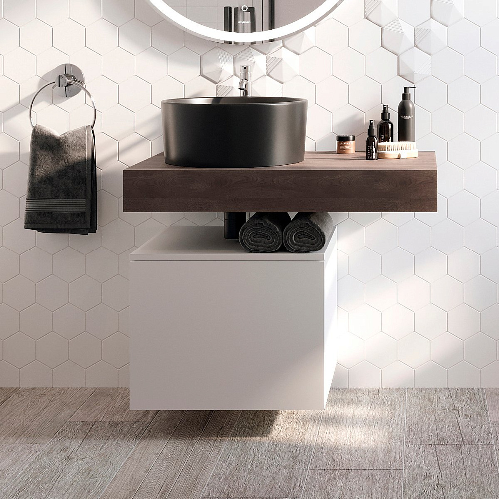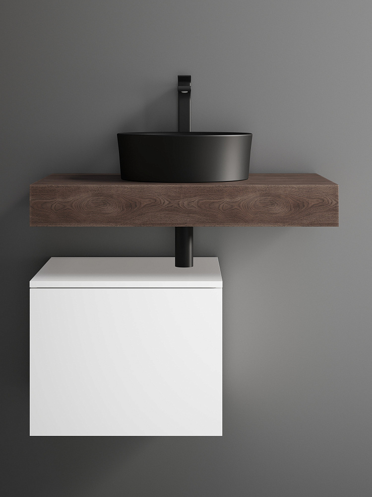 Столешница STWORKI Ольборг 80 дуб карпентер, без отверстий, с тумбой 50, черной раковиной