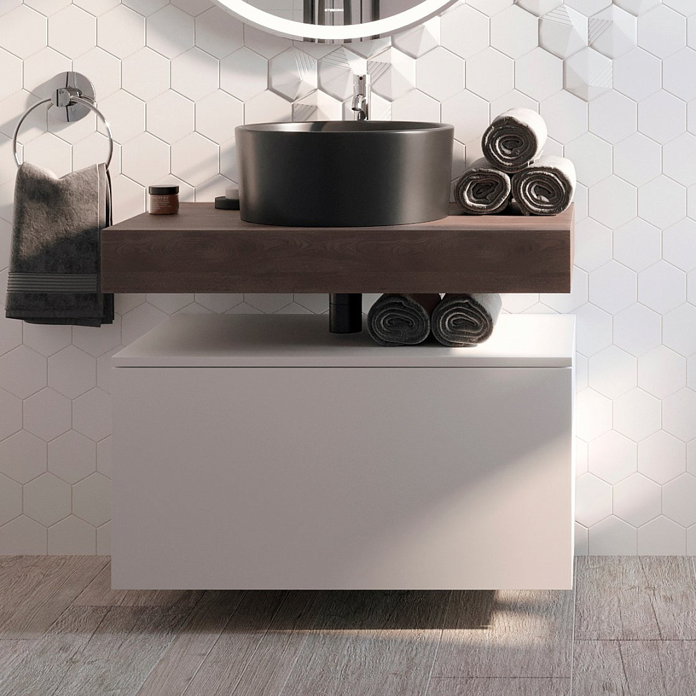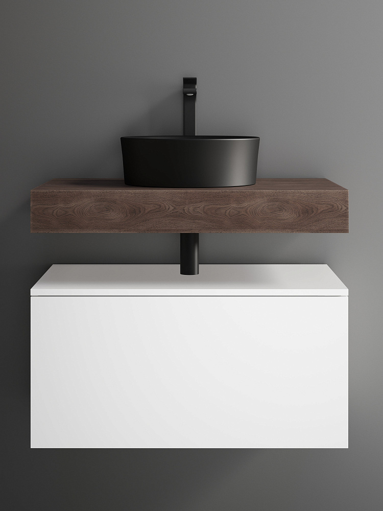 Столешница STWORKI Ольборг 80 дуб карпентер, без отверстий, с тумбой 80, черной раковиной
