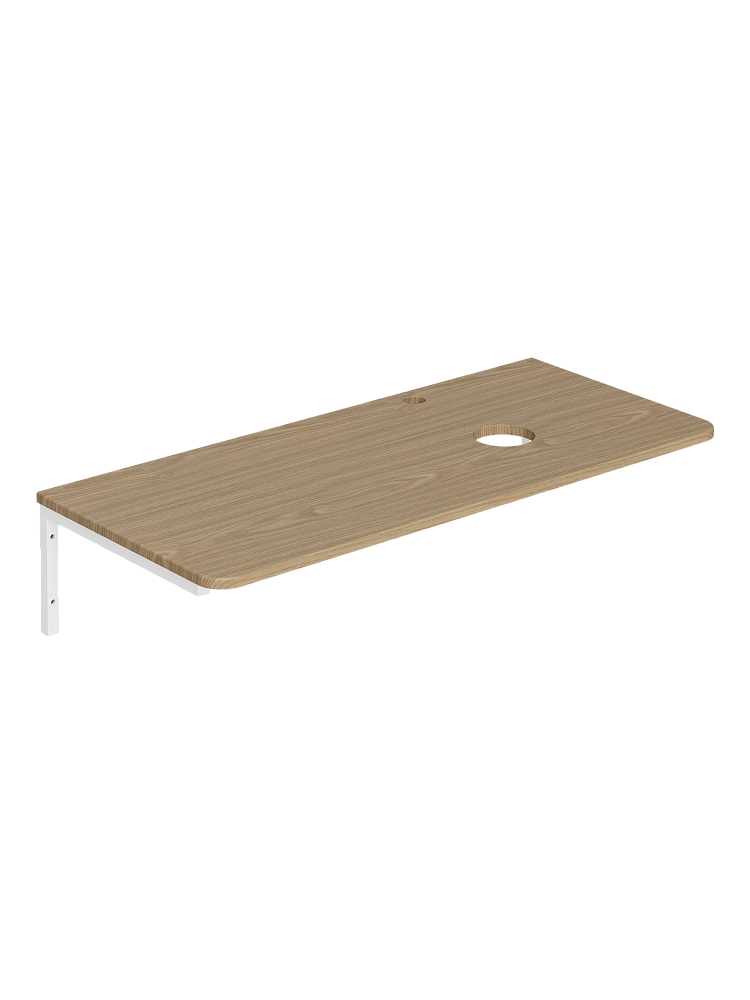 Столешница под раковину в ванную STWORKI Монтре 100 с Г-образными белыми кронштейнами, отверстие справа, светлое дерево