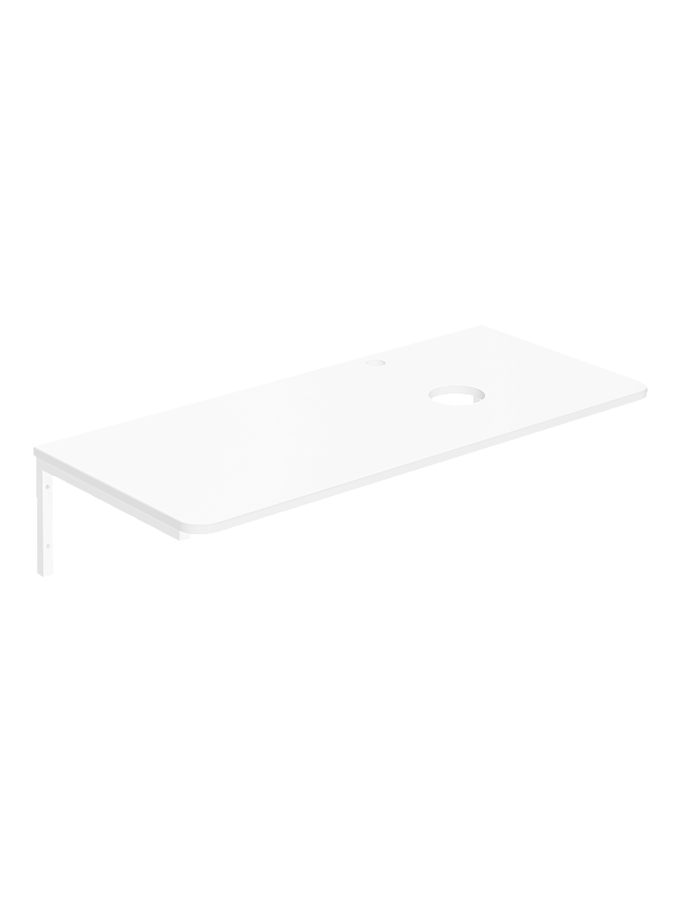 Столешница под раковину в ванную STWORKI Монтре 100 с Г-образными белыми кронштейнами, отверстие справа, белая