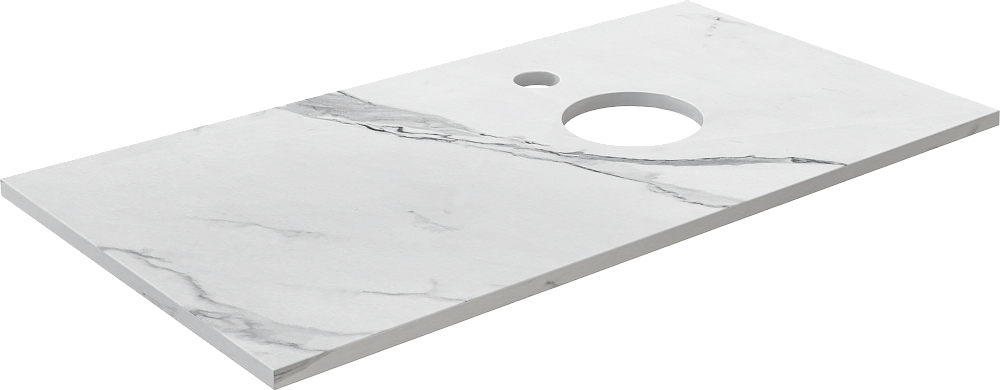 Столешница под раковину в ванную STWORKI Монтре 100 с О-образными белыми кронштейнами, отверстие справа, белый мрамор