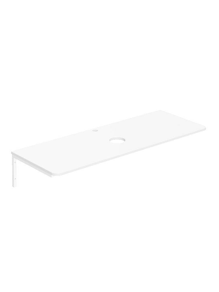 Столешница под раковину в ванную STWORKI Монтре 120 белая, МДФ, с отверстием по центру, с Г-образными белыми кронштейнами