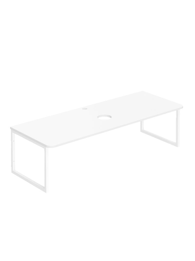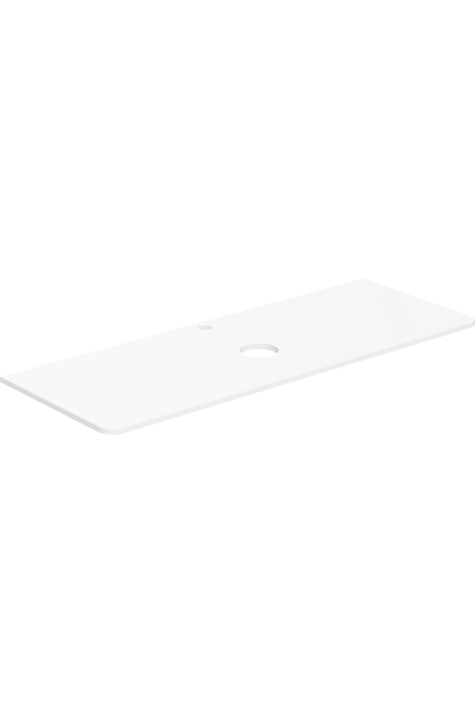 Столешница под раковину в ванную STWORKI Монтре 120 белая, МДФ, с отверстием по центру, с О-образными белыми кронштейнами