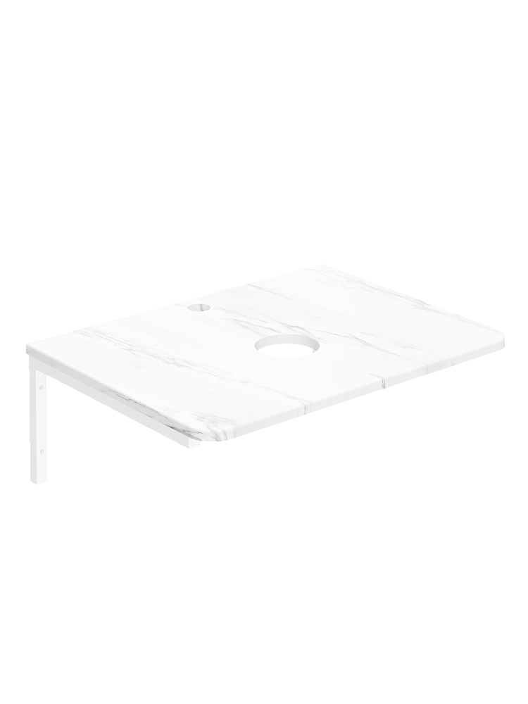 Столешница под раковину в ванную STWORKI Монтре 60 с Г-образными белыми кронштейнами, белый мрамор