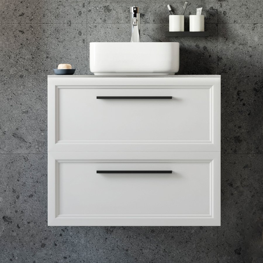 Тумба под раковину со столешницей STWORKI Эстерсунд 75 матовая белая, простоун беж