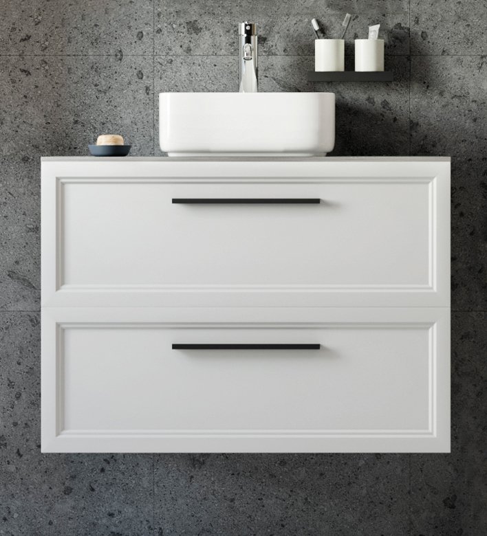 Тумба под раковину со столешницей STWORKI Эстерсунд 90 матовая белая, монте тиберио