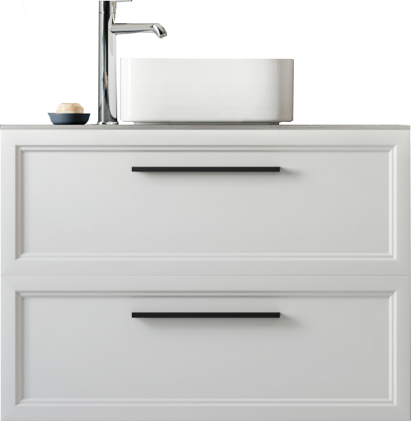 Тумба под раковину со столешницей STWORKI Эстерсунд 90 матовая белая, монте тиберио, с отверстием для смесителя