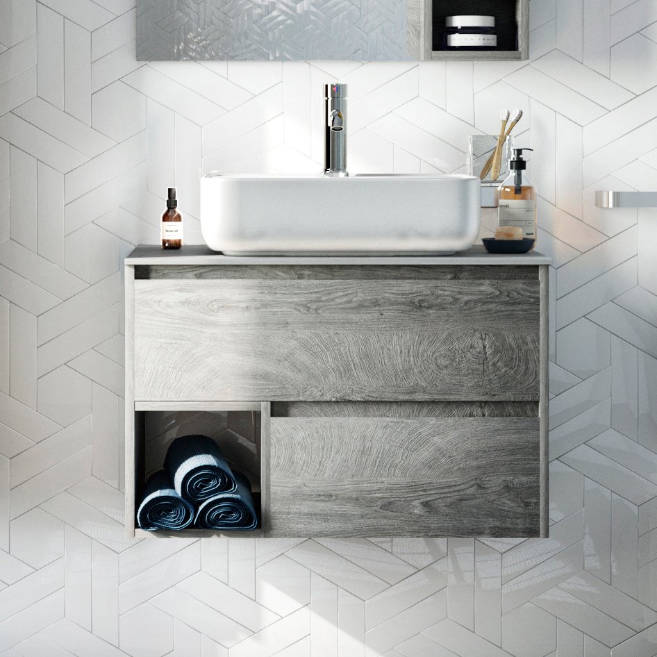 Тумба под раковину со столешницей STWORKI Карлстад 75 дуб рошелье, роверелла