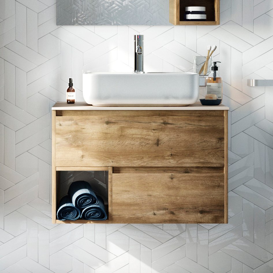 Тумба под раковину со столешницей STWORKI Карлстад 75 дуб рустикальный, роверелла