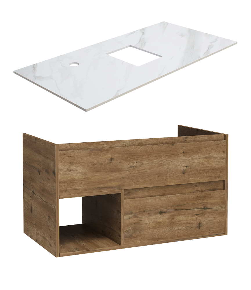 Тумба под раковину со столешницей STWORKI Карлстад 90 дуб рустикальный, монте тиберио, с отверстием для смесителя