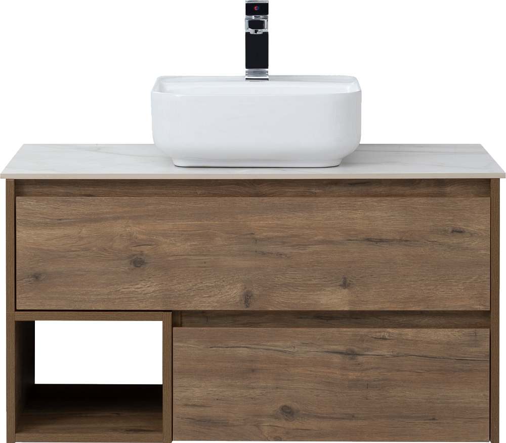 Тумба под раковину со столешницей STWORKI Карлстад 90 дуб рустикальный, простоун беж