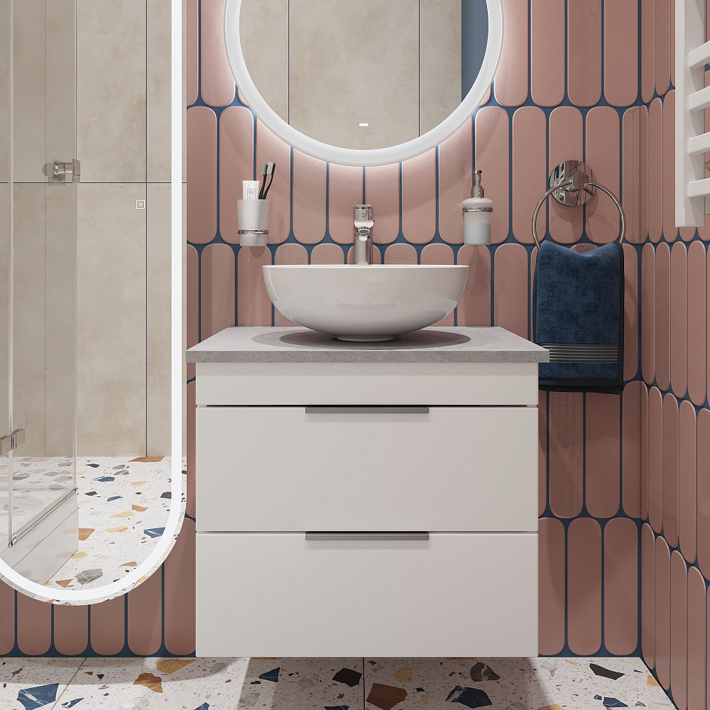 Тумба под раковину со столешницей STWORKI Копенгаген 60 белая, матовая серая