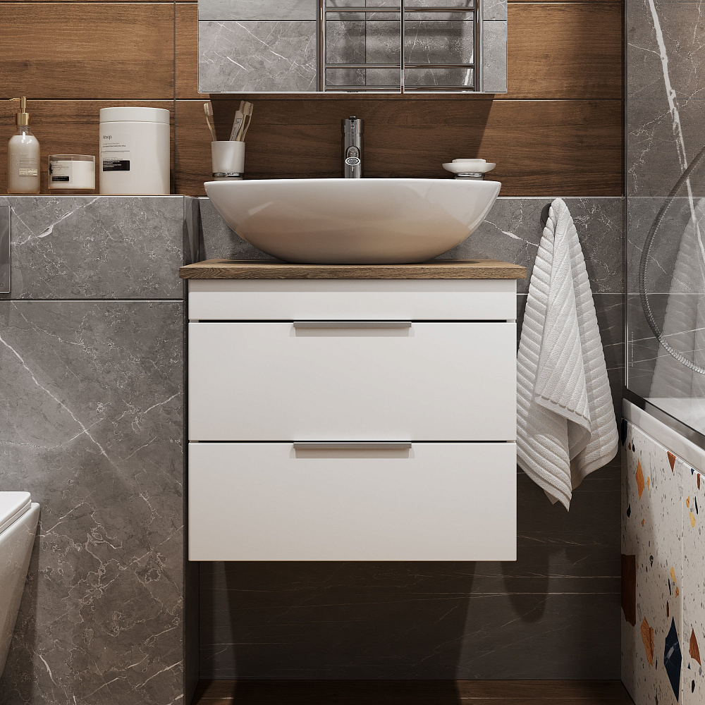 Тумба под раковину со столешницей STWORKI Копенгаген 60 белая, матовый орех