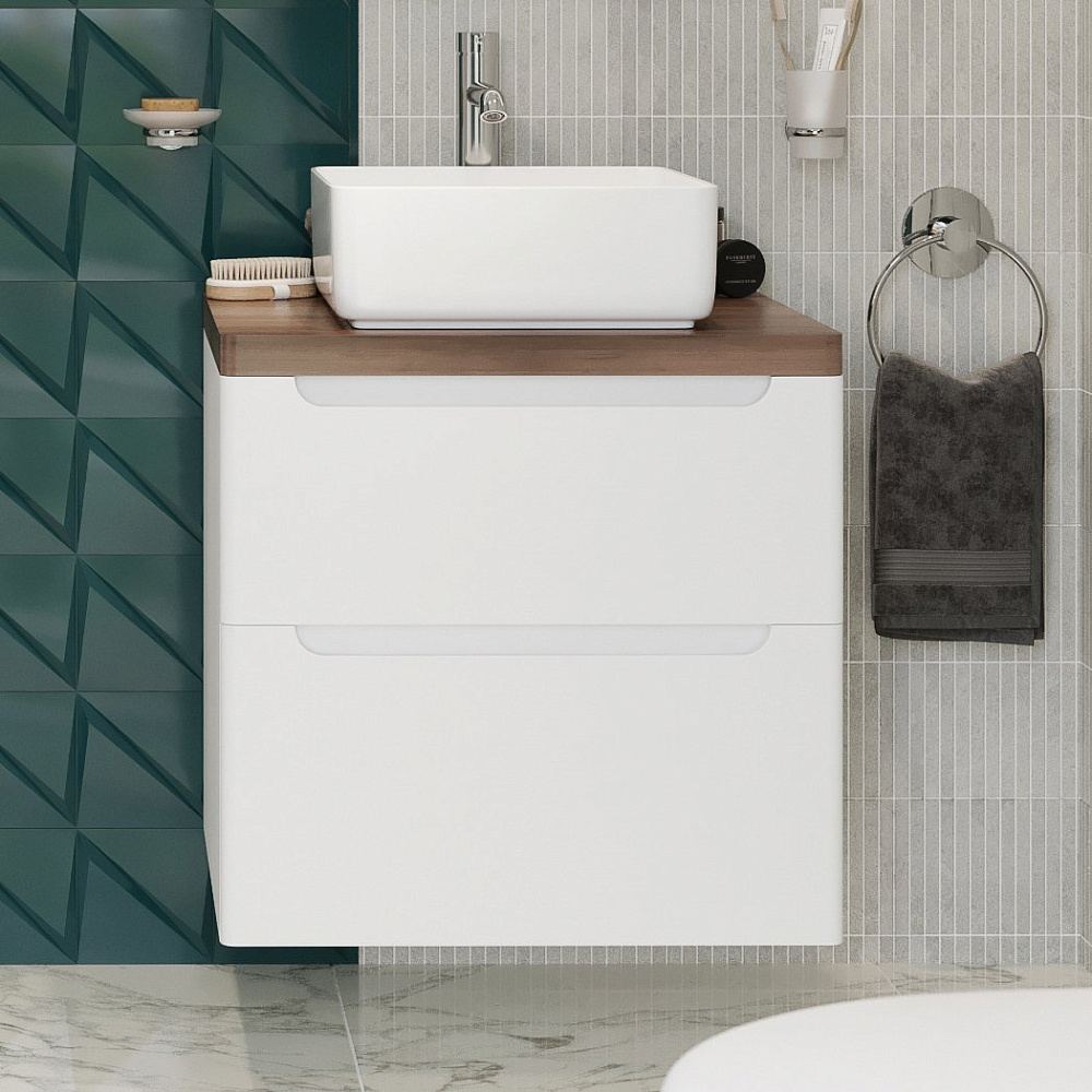 Тумба с раковиной STWORKI Берген 60 белая с темной столешницей, City 1
