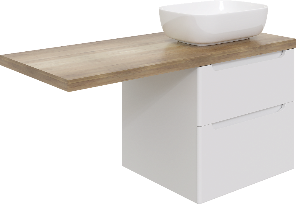 Тумба с раковиной STWORKI Берген 60 белая со светлой столешницей 122, Moduo 50 Square, L