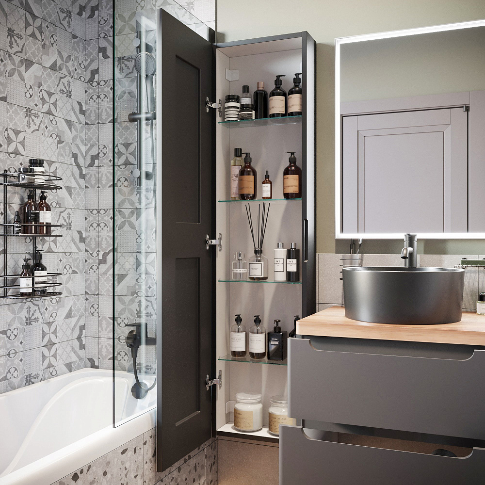 Тумба с раковиной STWORKI Берген 60 серая с темной столешницей 122, с раковиной на выбор, R